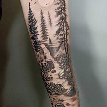 Для стилю black work характерні зображення лісу, які набиваються на передпліччя та зап'ястя.
