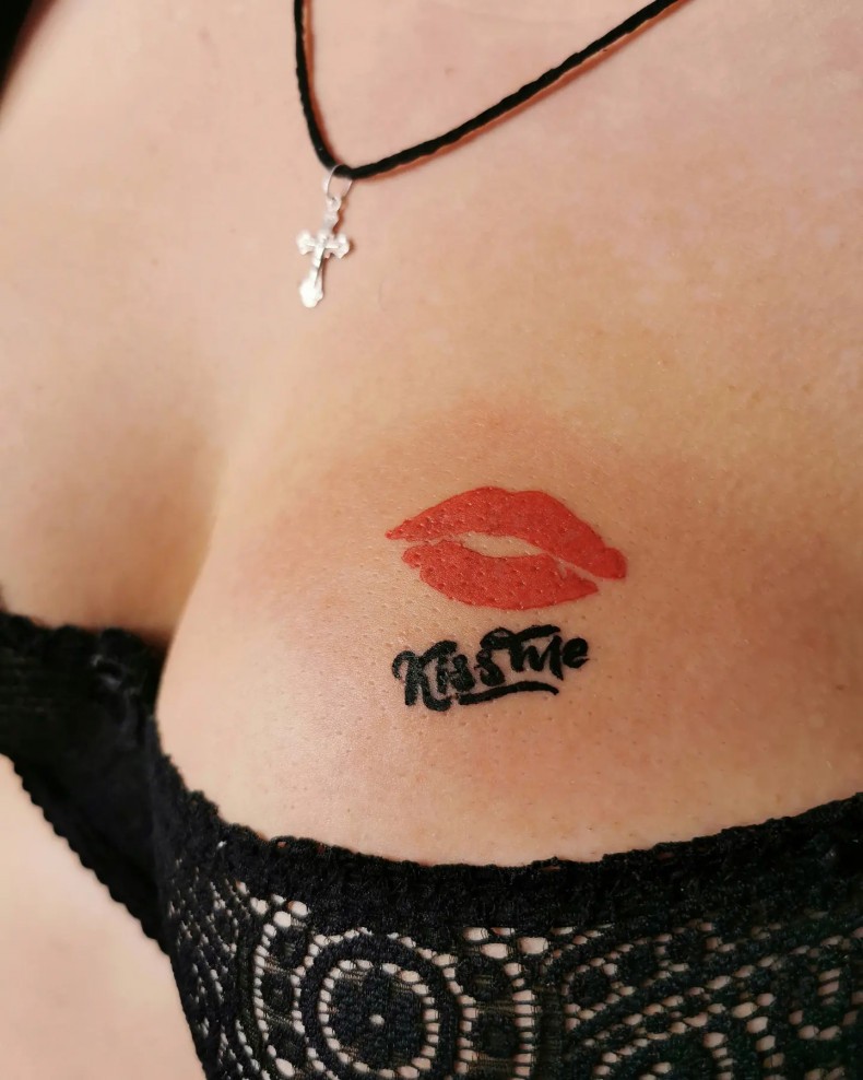 Наколку з губами часто набивають на шиї, плечі, грудях, стегні або зап'ясті. Такий дизайн може бути яскравим, кольоровим - з акцентом на червоний і рожевий, або виконаним у чорній графіці. Розмір залежить від ідеї: від мініатюрної мітки до помітного елемента композиції.