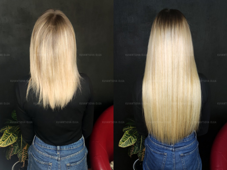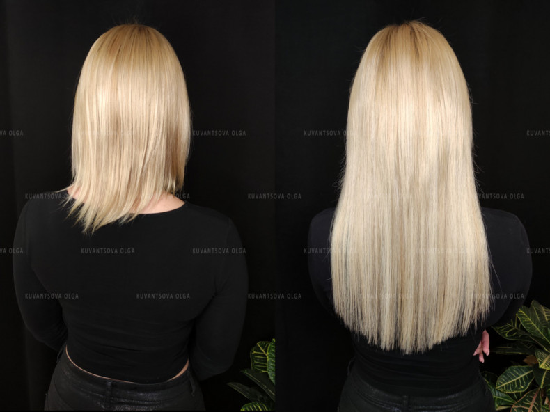 Наращивание волос — парикмахерская процедура добавления к естественным волосам человека дополнительных прядей для придания длины и объема. Донорские волосы крепятся к волосам клиента на прядь 0.5 - 1 см при помощи горячих щипцов, разогретых до 180-200С. При воздействии высоких температур кератиновая капсула расплавляется и мастер пальцами скручивает размягченный кератин, смешивая донорские волосы с волосами клиента.