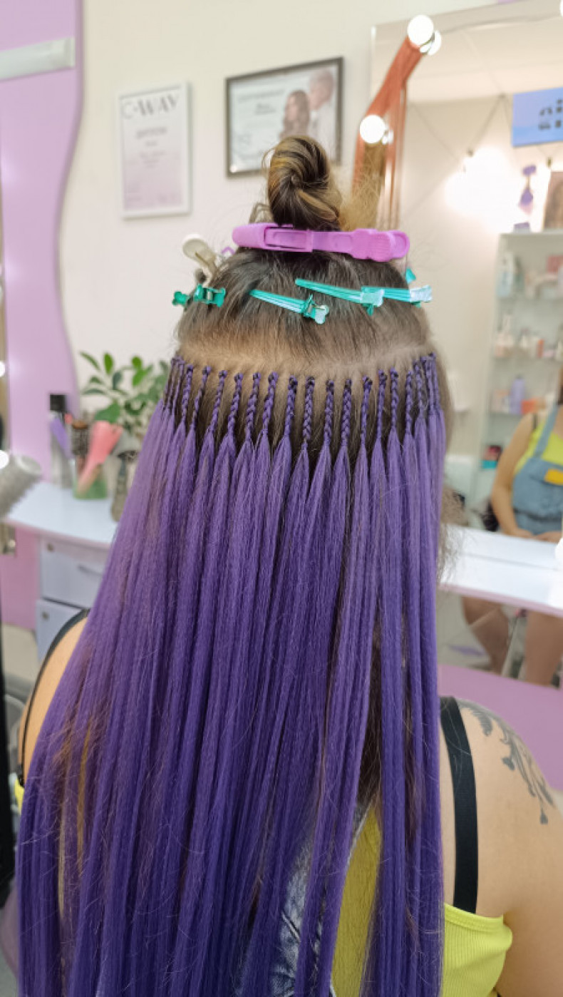 Фарбувати волосся потрібно до афронарощування та після розплетіння , під час того як заплетене волосся не рекомендую фарбувати волосся.