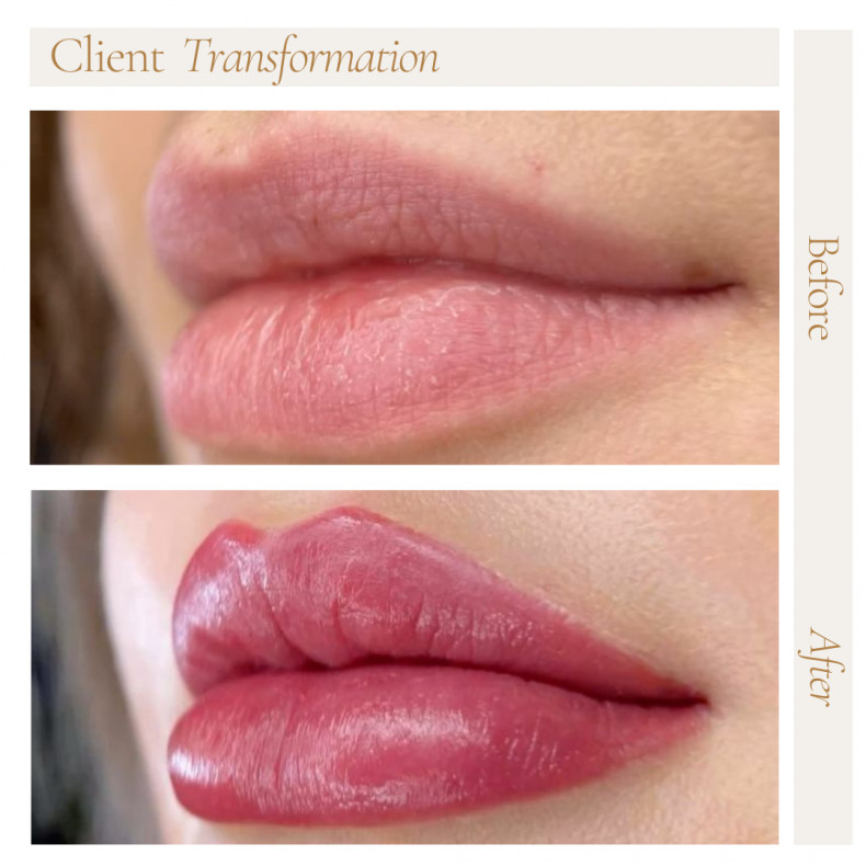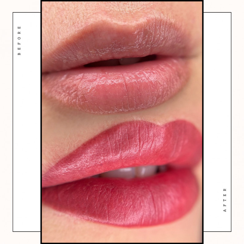 Суть татуажу з ефектом помади полягає в тому, що губи щільно фарбуються в один колір. Завдяки цьому створюється враження, ніби губи постійно нафарбовані помадою. Така техніка особливо актуальна для тих, хто хоче приховати шрами та інші вади у цій галузі.