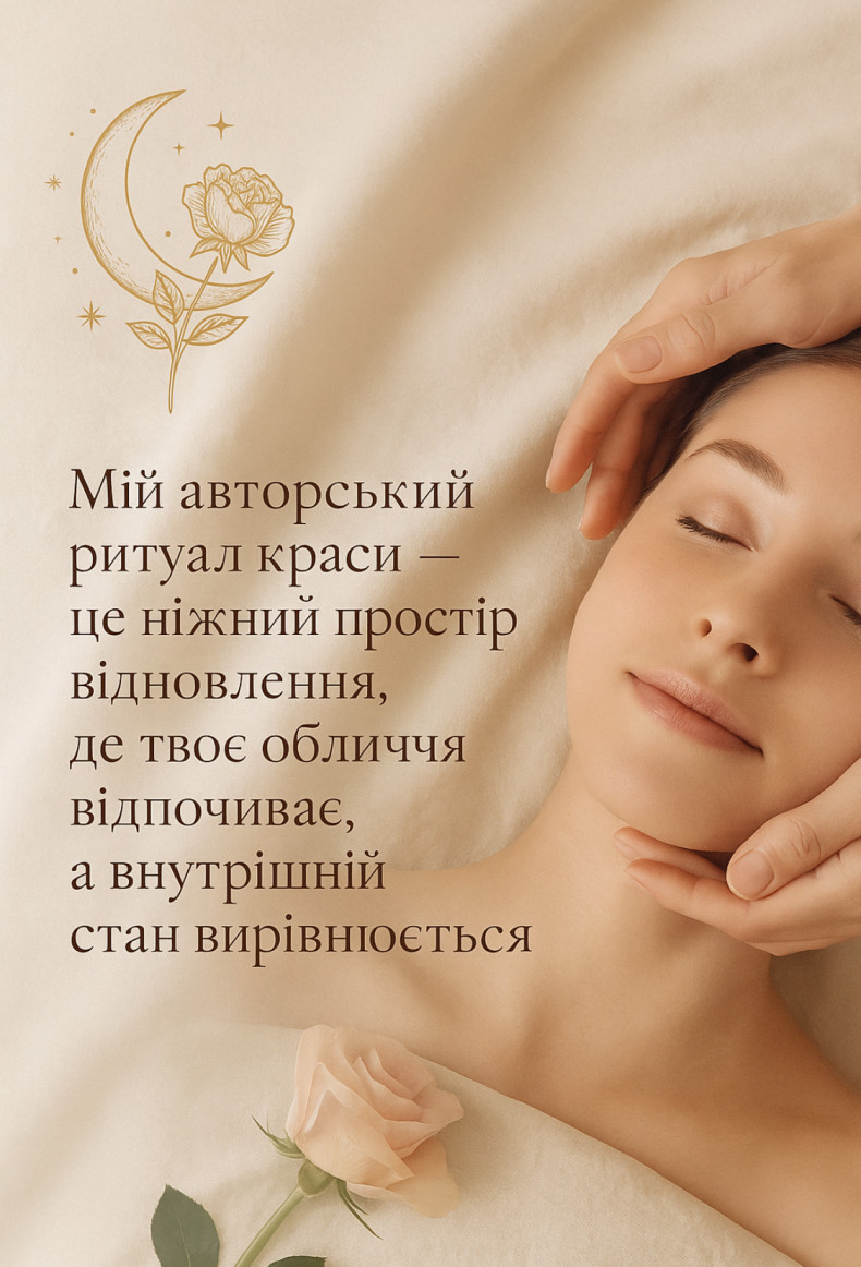 Запрошую на авторський рітуал краси на основі масажу обличчя та доглядових процедур.