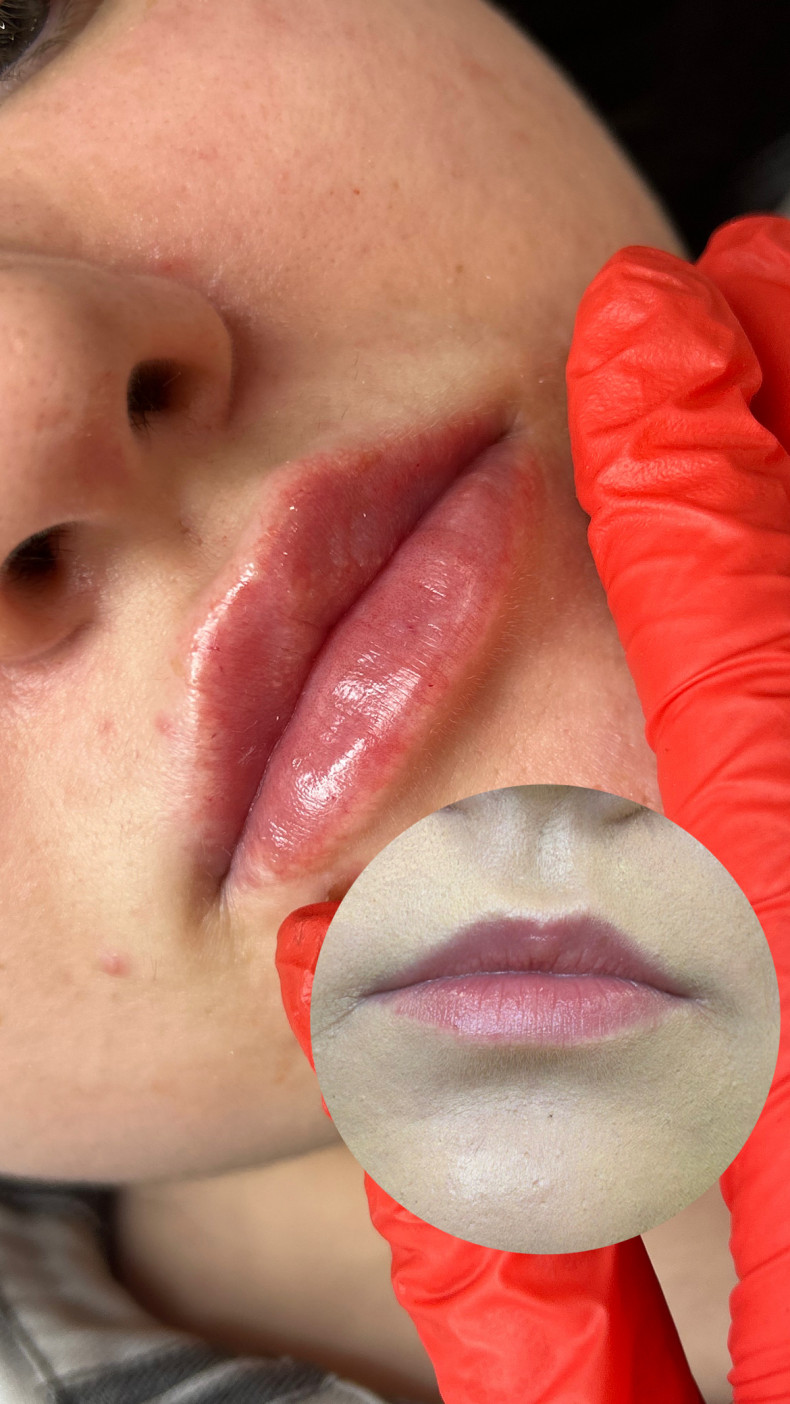 Процедура триває близько 30–40 хвилин, виконується з використанням анестезії. Після — можливий набряк, але вже через кілька днів губи виглядають природно та доглянуто.