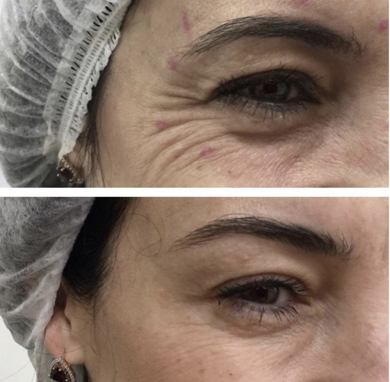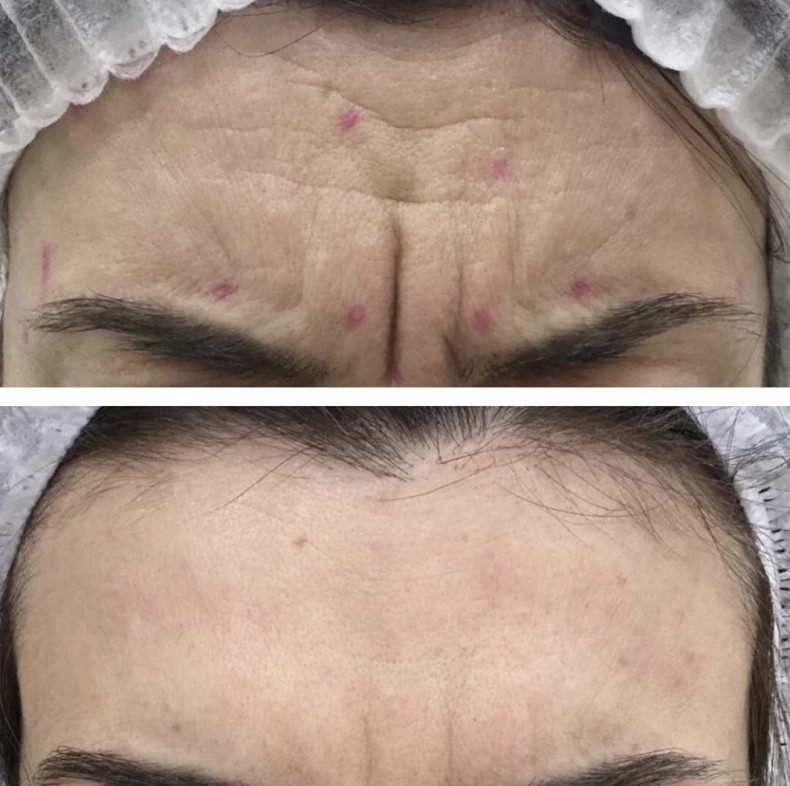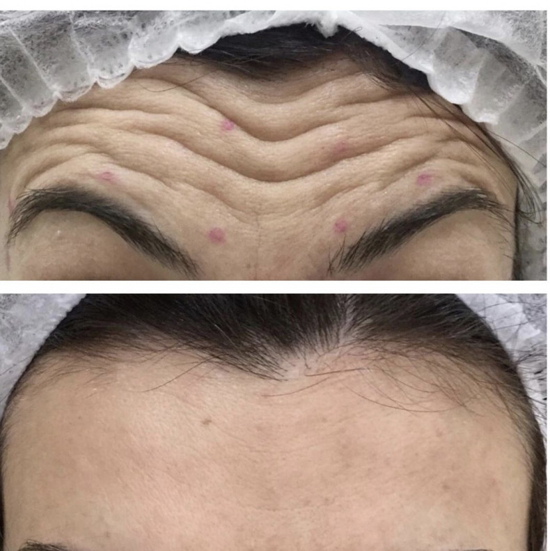 Результаты проведенной ботулинотерапии лица появляются на 2-й-3-й день, через 1-2 недели эффект максимально проявляется. Полностью исчезают мелкие и средние морщины, глубокие становятся намного меньше. Лицо приобретает спокойное и доброжелательное выражение, выглядит моложе. Кожа становится упругой. Во время проявления эмоций не образуются морщины, портящие внешность. Постепенно действие ботулотоксина ослабляется, восстанавливается передача нервных импульсов, и мимические морщины опять начинают проявляться. Через 4-6 месяцев можно проводить процедуру повторно.