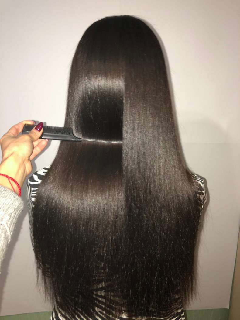 Процедура выравнивает волосы, делает их гладкими, блестящими.