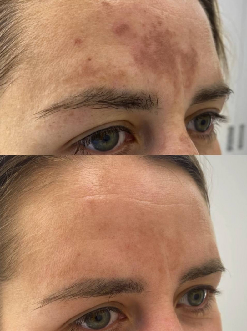 - Пігментація (включаючи лентіго, сонячний кератоз, кавові плями, гемосидероз, гіперпігментацію,мелазма, прояви фотостаріння)