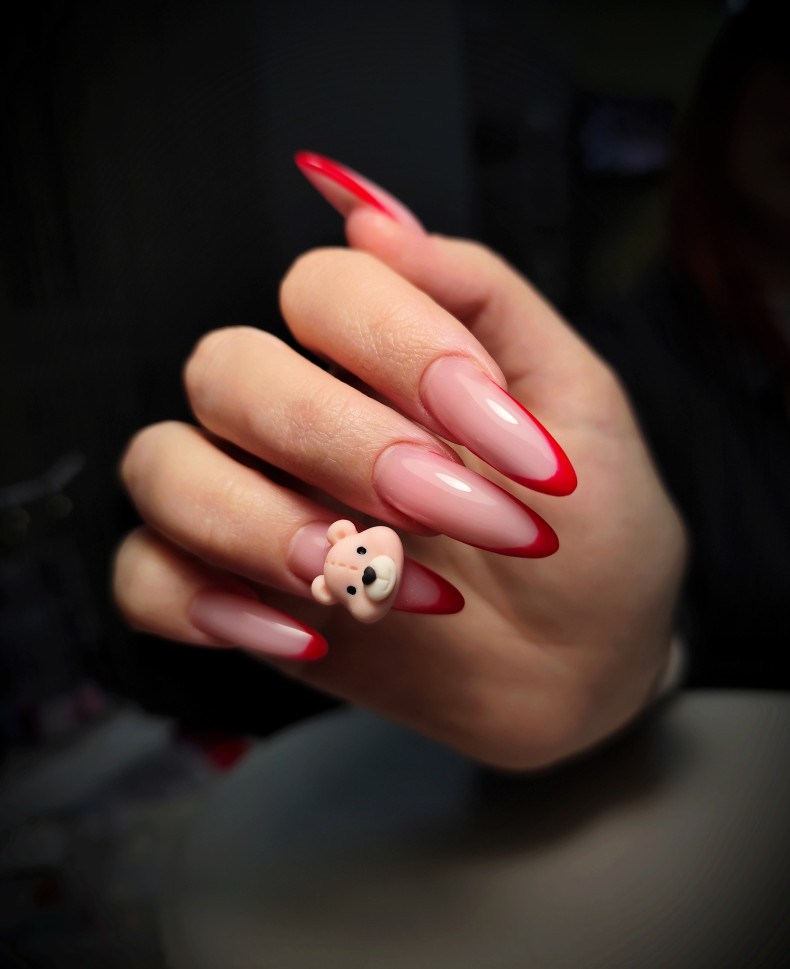 гелевий манікюр, манікюр із серцями, манікюр з глітером, стильний манікюр, манікюр з павутинкою