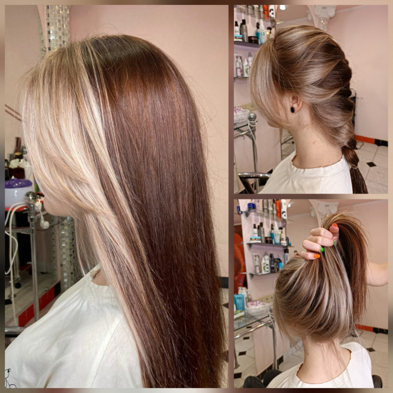 Можна висвітлити волосся як окремими пасмами, так і практично до блонду, приховати сивину, що пробивається, надати свіжості образу.