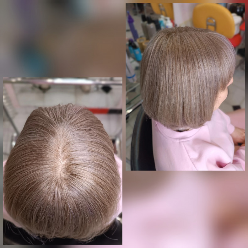 Щоб підкоригувати, вирівняти отриманий в результаті освітлення колір і надати бажаний відтінок на світлих прядках, волосся тонують барвником.