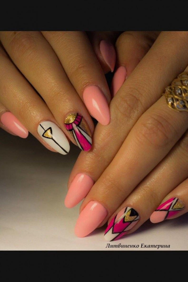 Самая популярная тематика ногтевой росписи – орнамент, геометрические фигурки, иероглифы, цветы и плоды, праздничная тематика, например, новогодняя либо к дню святого Валентина.