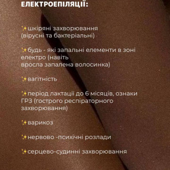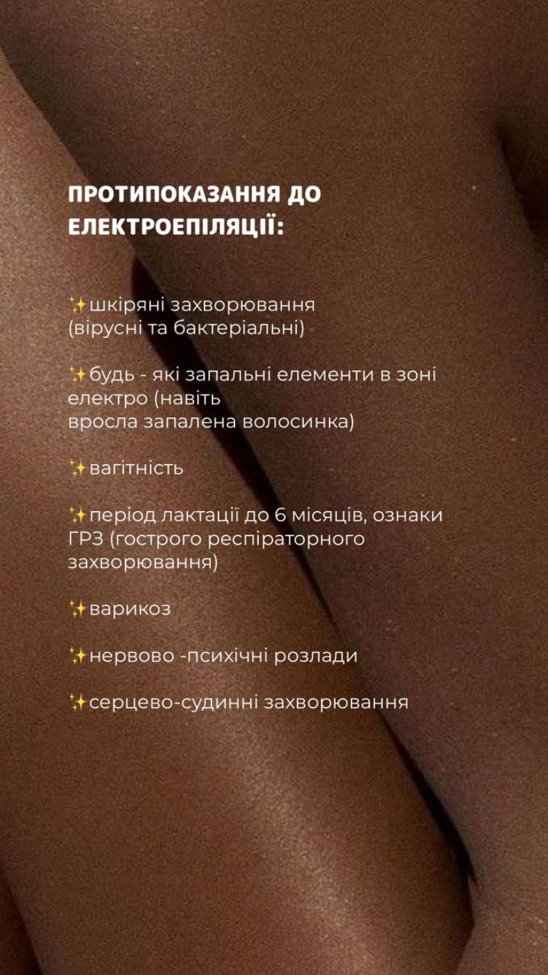 Я майстер електроепіляції, позбавлю вас від небажаного волосся на будь-якій ділянці тіла. Працюю тільки з одноразовими та простерелізованими матеріалами.