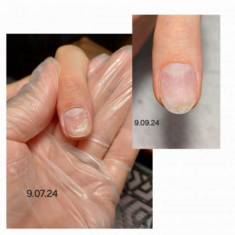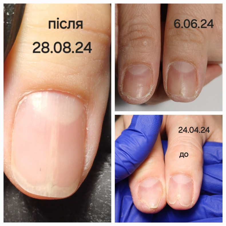 Грибок нігтів (оніхомікоз) може з’явитися після відвідування лазні, басейну або пляжу, якщо не використовувалися капці. На захворювання вказує розшарування нігтьової пластини, ніготь втрачає блиск і змінює колір, стає товщим. Інфекцію потрібно лікувати якнайшвидше, щоб вона не поширилася на інші нігті. Подолог може виконати забір матеріалу на аналіз, обробити нестабільні ділянки нігтя, виконати протезування нігтьової пластини, щоб відновити естетичний вигляд нігтя.