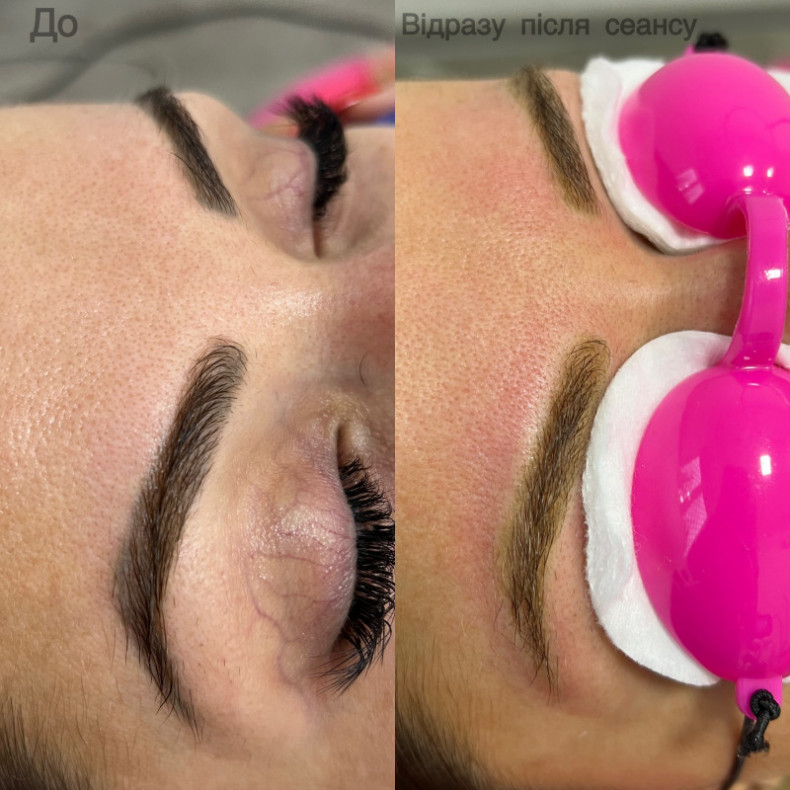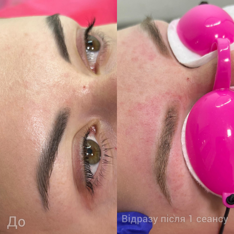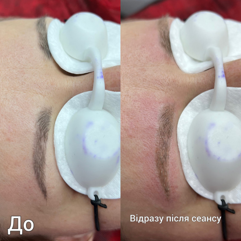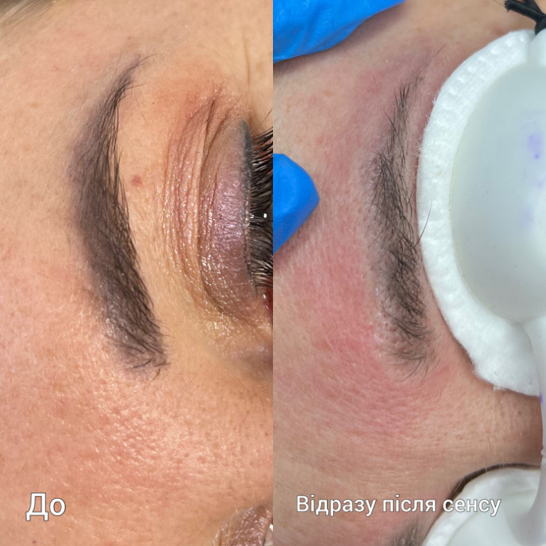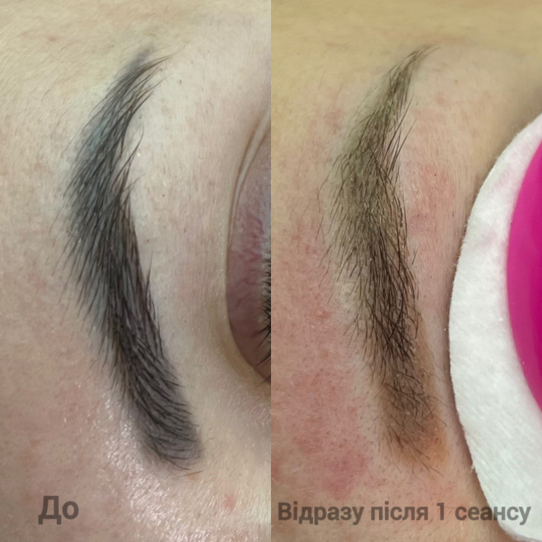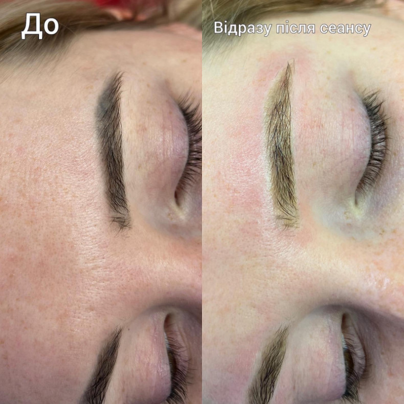 Без травматизації шкіри, загоєння без кірочок, на другий день можна спокійно підфарбовувати брівки олівцем при необхідності