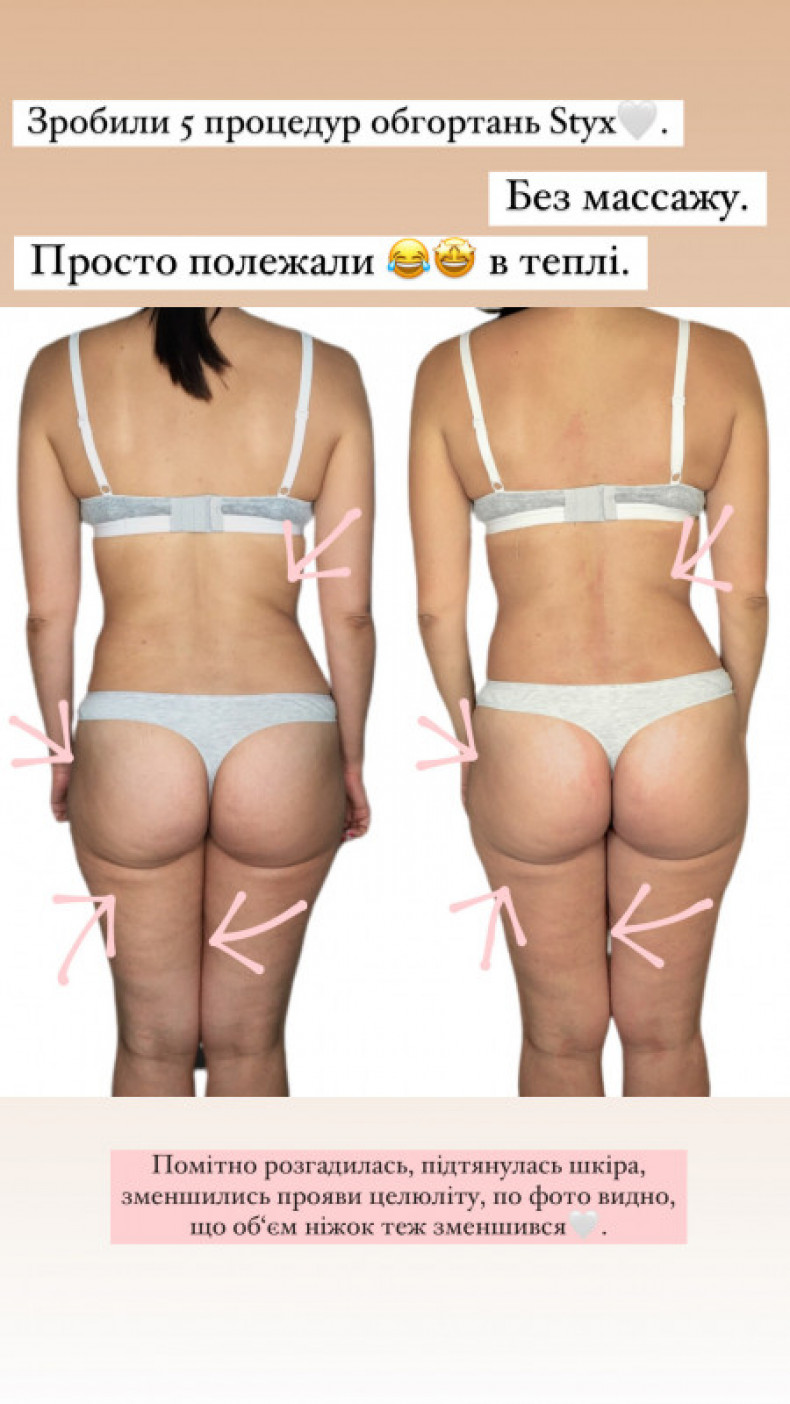 Очікувані результати : -Виведення целюліту; -Усунення набряклості; -Зменшення об‘ємів тіла; -Зниження ваги тіла; -Виведення токсинів, очищення організму; -Оздоровлення клітин клітин сполучної і жирової тканин; -Відновлення мікроцеркуляції та лімфотоку; -Оптимізація обміну речовин; -Омолодження організму; -Відновлення тургору шкіри; -Підвищення еластичності сполучної тканини; -Позбавлення запальних процесів шкіри; -Зменшення проявів судинного малюнку та стрій (розтяжек) на шкірі.