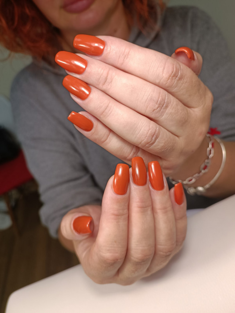 Дезинфікуємо ручки, оцінюю ручки, приступаю до зняття матеріалу, роблю манікюр по бажанню клієнта (комбі, апаратний), далі вибираємо колір та дизайн з клієнтом. Покриваю нігті гель-лаком, робимо дизайн та покриваю фінішем(топом).