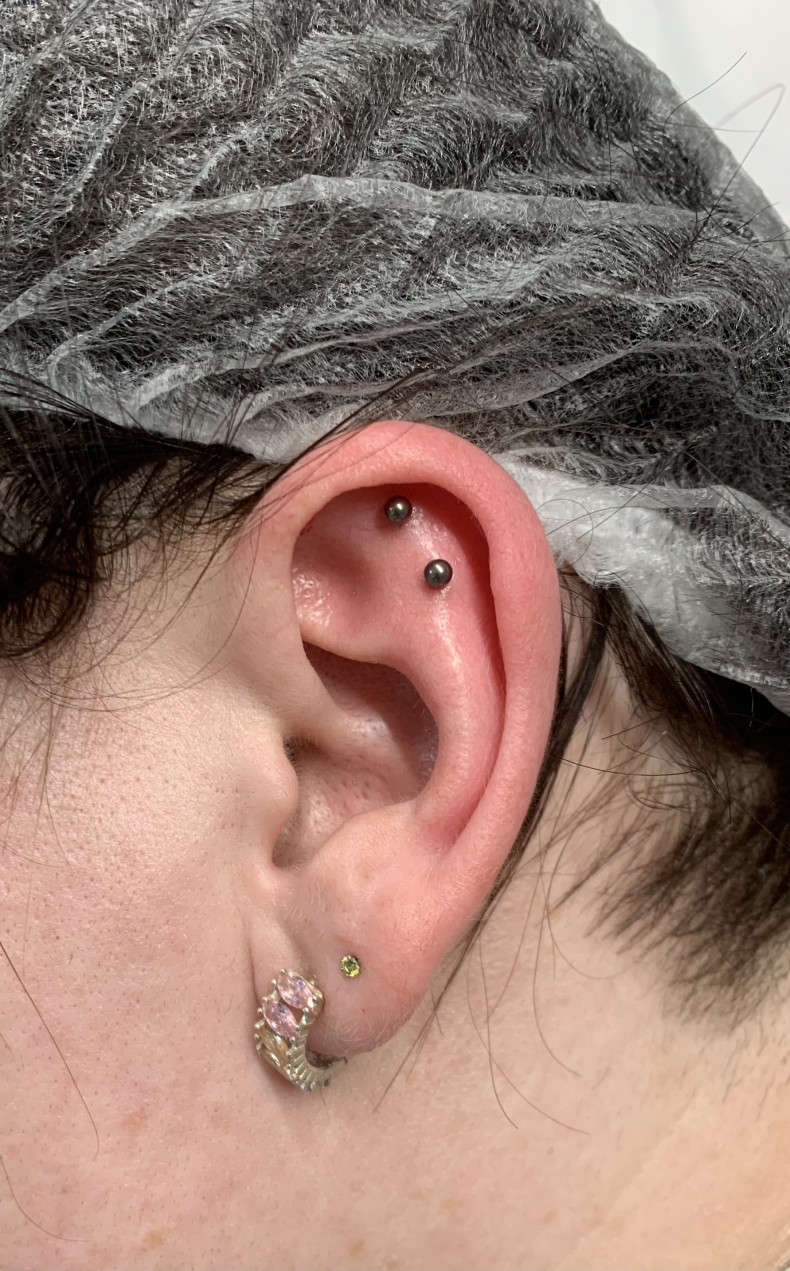 Поки прокол не зажив повністю, підходять лише сережки прямої форми: