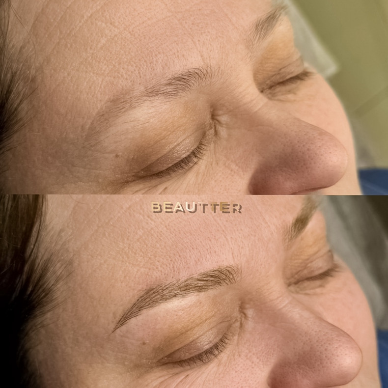 Це метод, при якому майстер промальовує кожен «волосок», повторюючи напрямок росту природних брів. У результаті — брови виглядають живими, натуральними та доглянутими, ніби свої, але кращі.