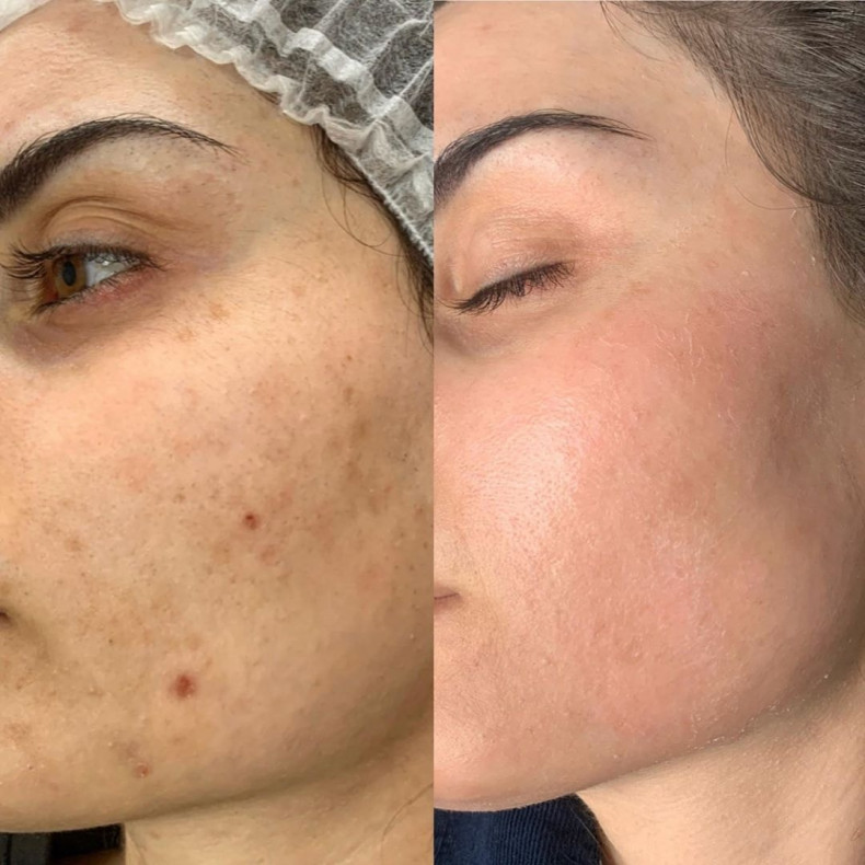 - Покращення текстури шкіри: процедура допомагає відновити рівний тон шкіри, зменшує пористість.
