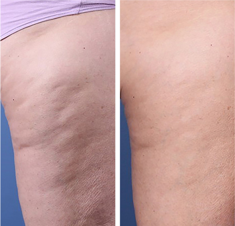 Процедура поєднує дві ефективні технології: мікроголкову терапію, яка стимулює вироблення колагену та еластину, і радіочастотний ліфтинг, що підвищує пружність шкіри, покращує її еластичність і сприяє її підтягуванню. В результаті шкіра в області сідниць і стегон стає більш гладкою, пружною і молодшою, зменшується в'ялість і прояви целюліту.