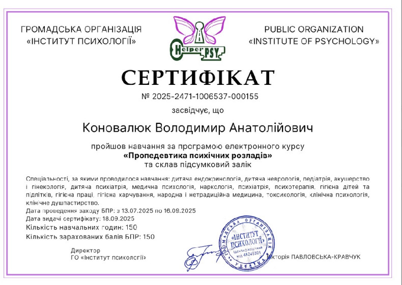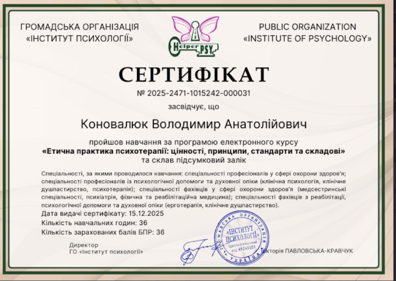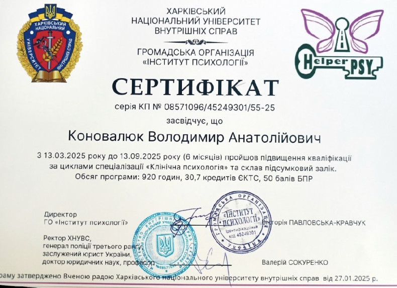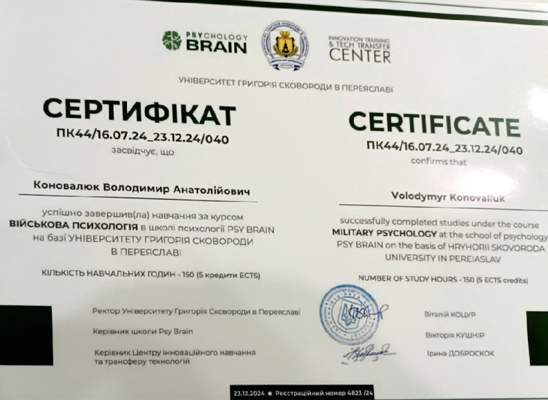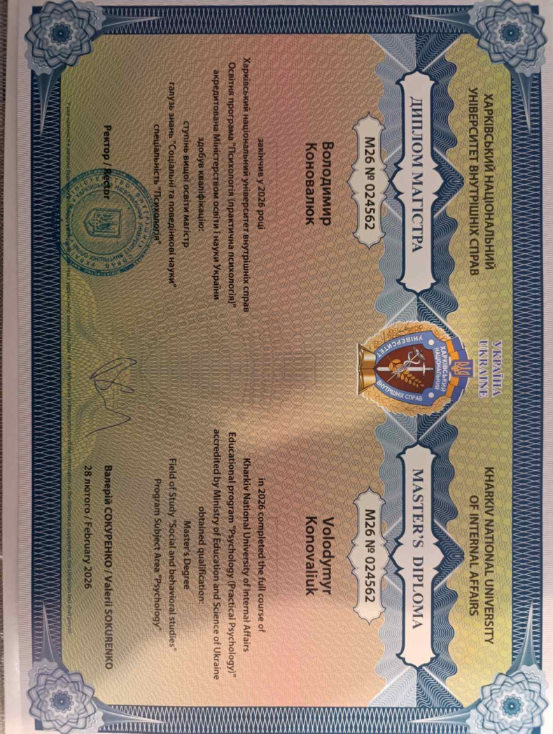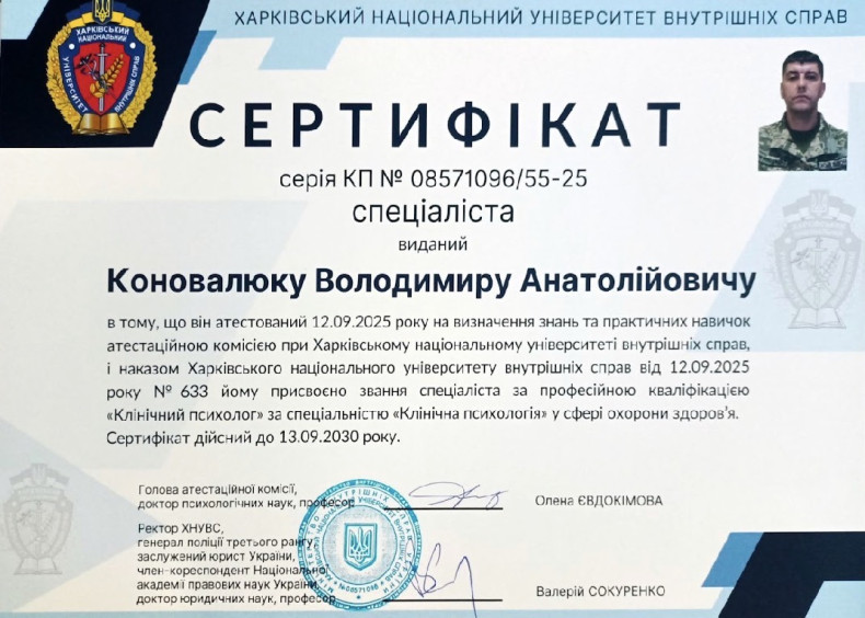 Клінічний психолог, медичний фахівець та діючий військовослужбовець.
