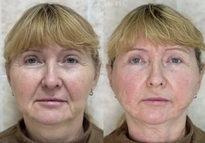 На фото помітно, як підтягнувся овал, зменшились носогубні складки.