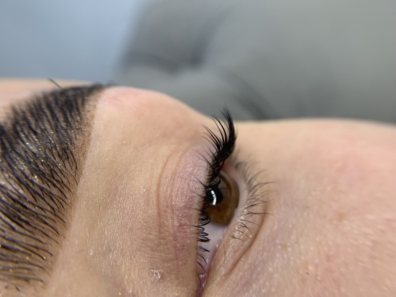 Ефект тримається в середньому 6–8 тижнів, не потребує складного догляду та не шкодить власним віям при правильному виконанні процедури.