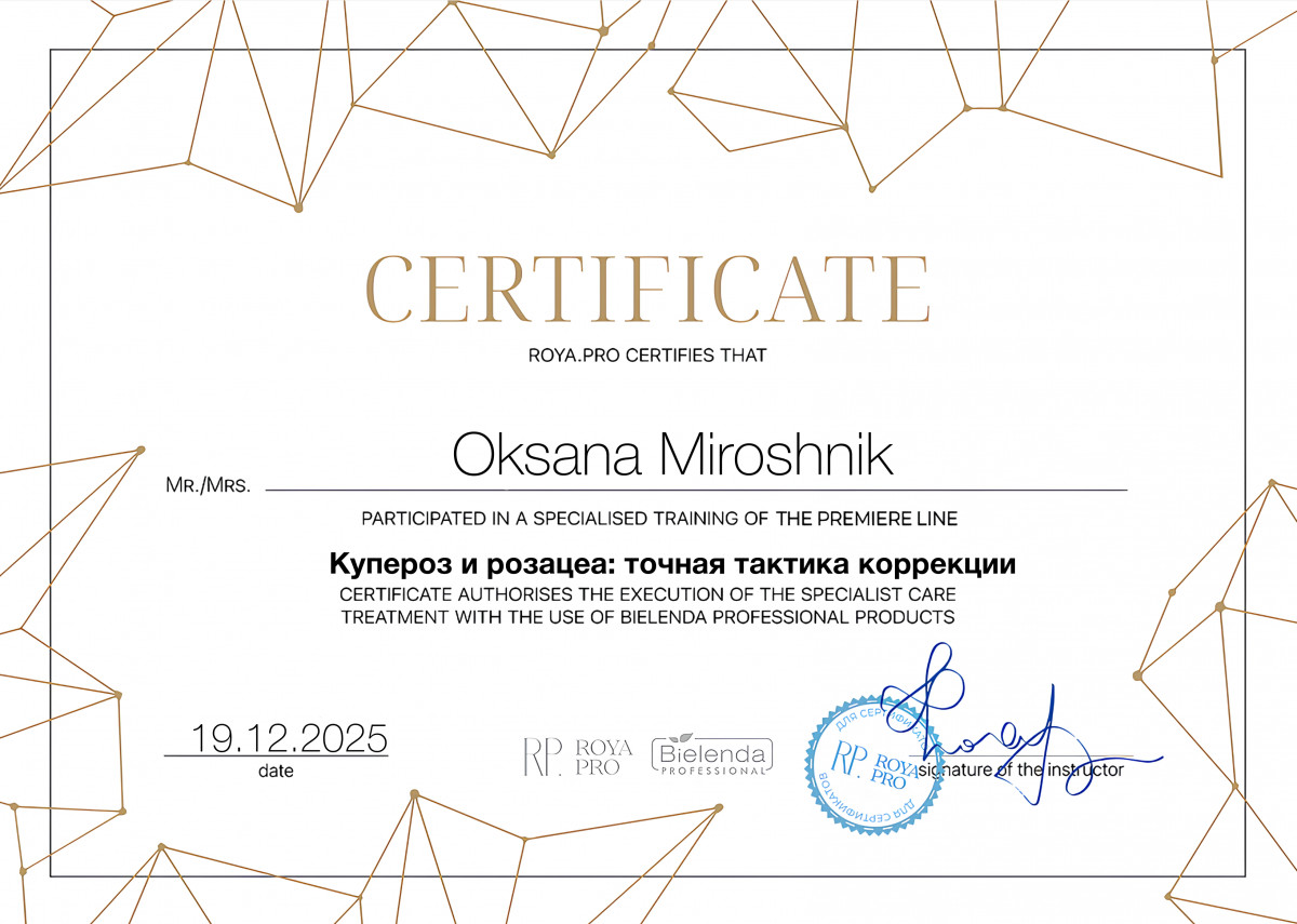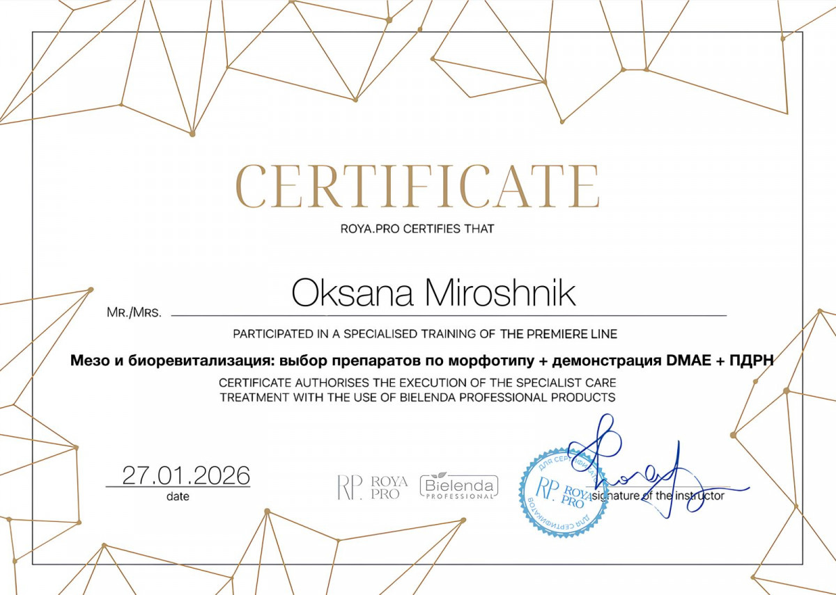 Дополнительные специализации: Косметолог, косметолог-эстетист