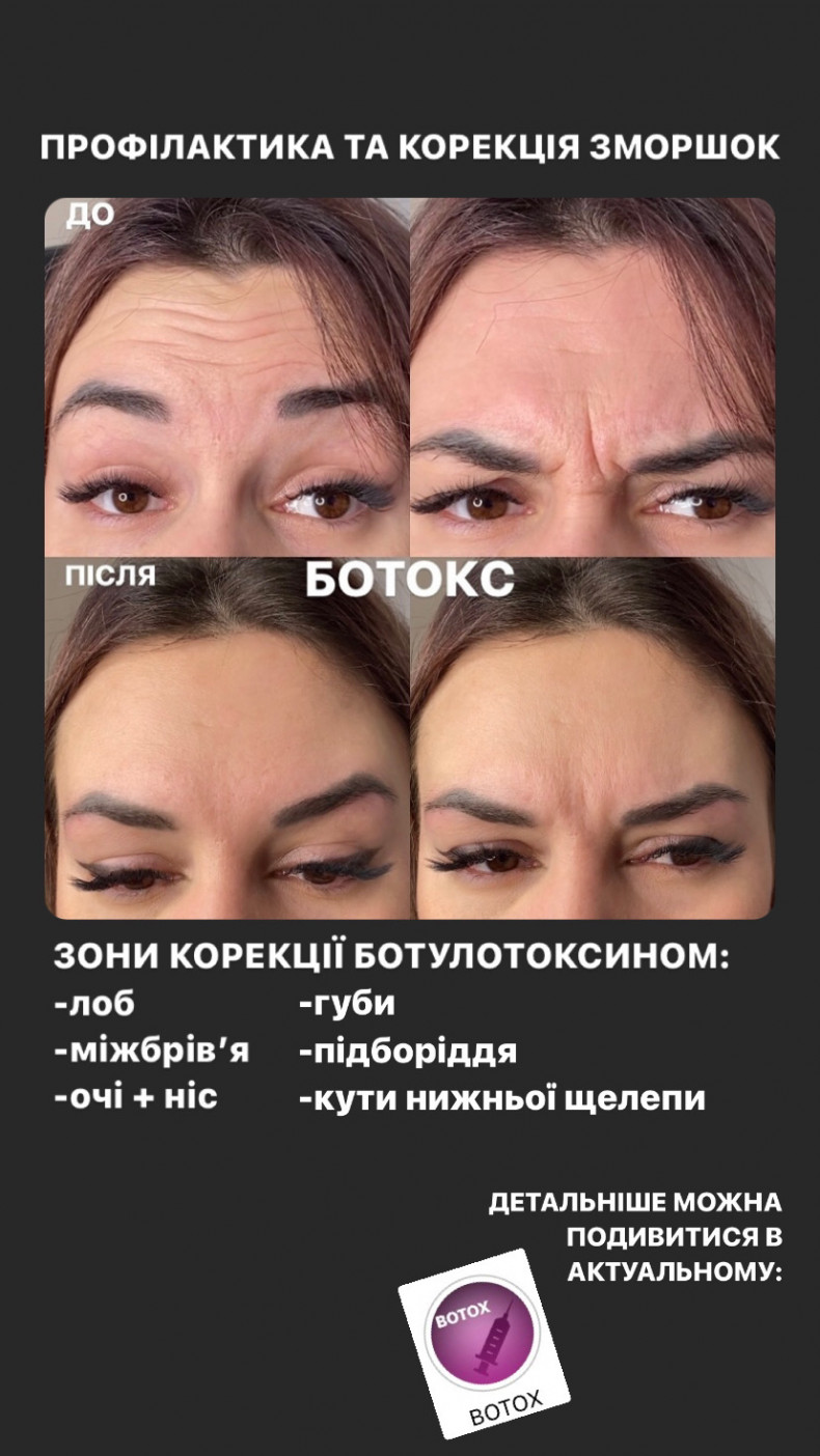 | Ботокс в межбровье | 1000 грн. / 10 мин |
