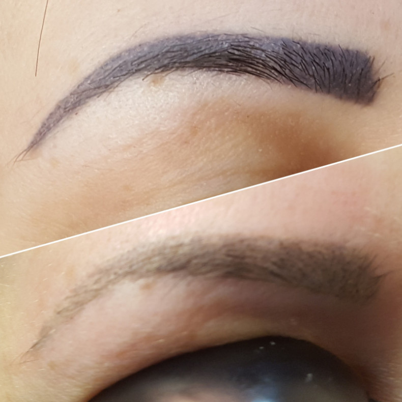 Неудачный татуаж лучше не перекрывать сразу, а сперва вывести лазером или ремувером. Для осветления оттенка придётся пройти как минимум 3 сеанса.