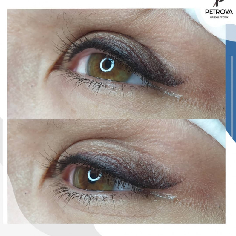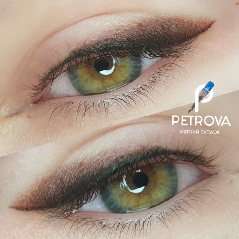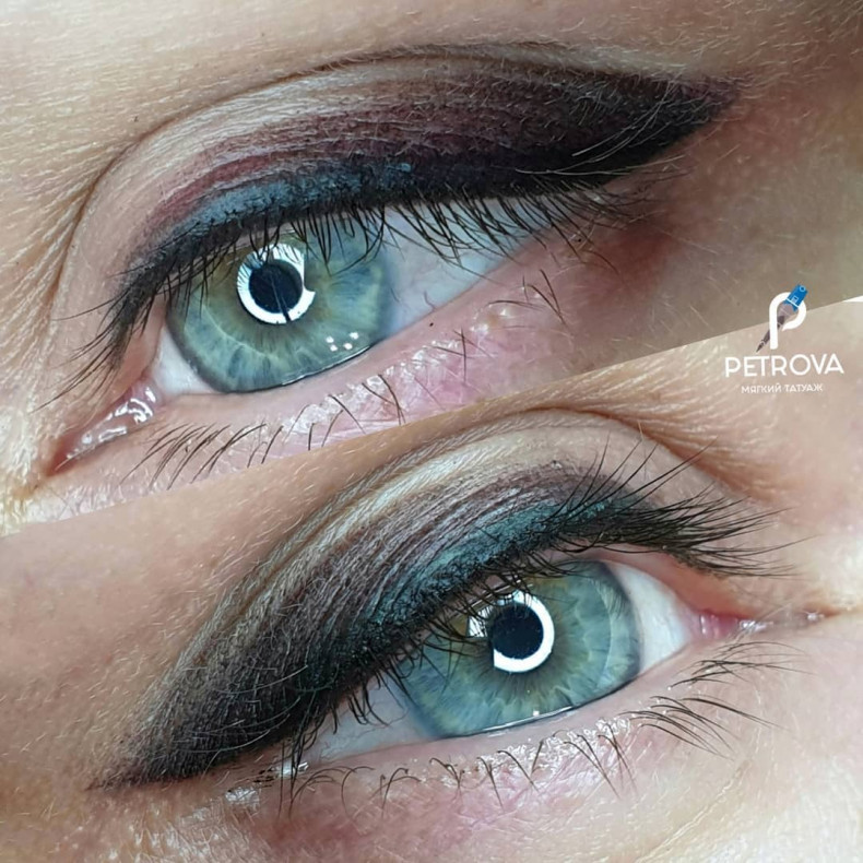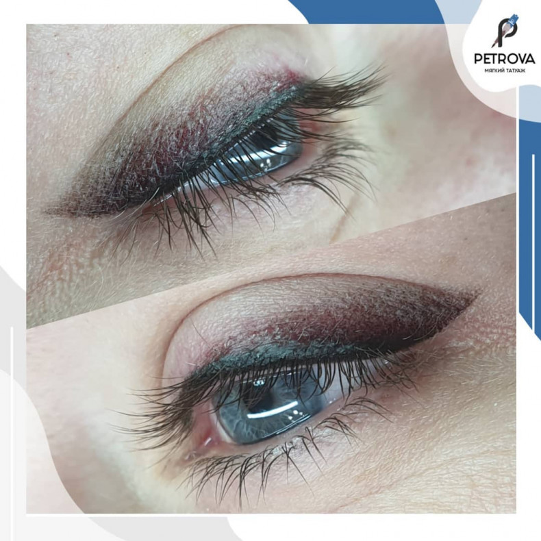 Стрелка с растушевкой идеально подойдет всем. Если классическая стрелка может не подойти из-за асимметрии глаз, при закрытом или нависшем веке, то стрелка с растушевкой подойдет абсолютно всем. Можно сделать как легкую направляющую стрелку с небольшой растушевкой, так и большую объемную тень. Эскиз подбирается индивидуально на процедуре.