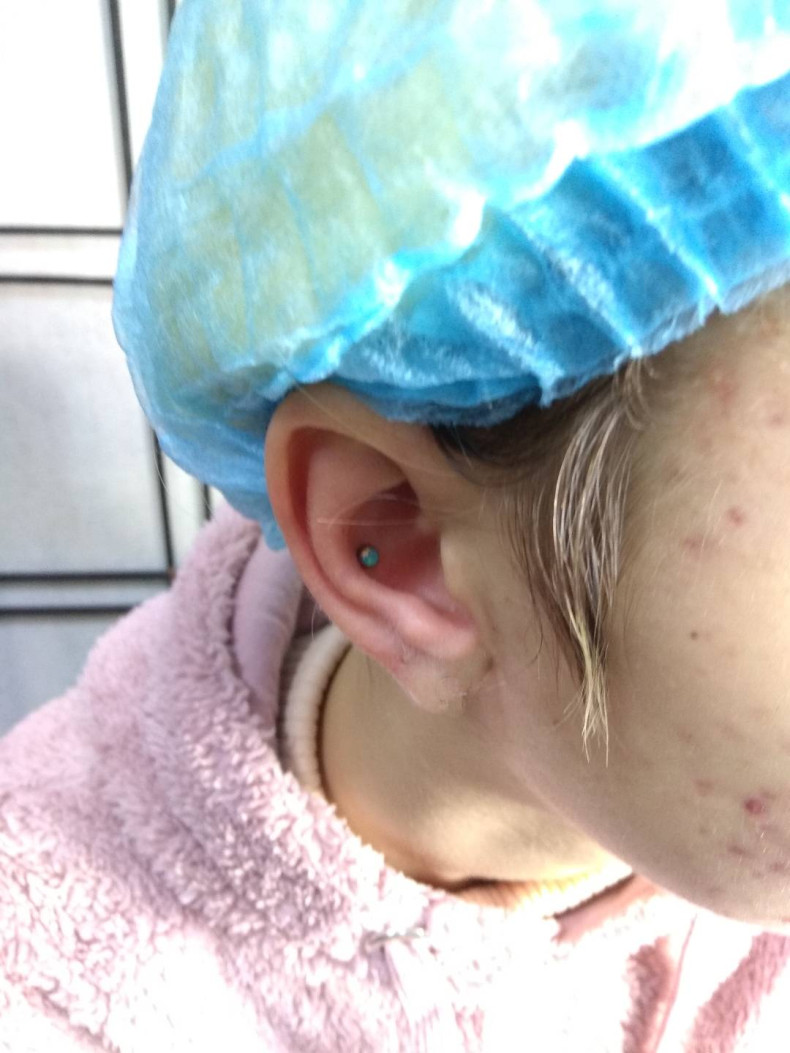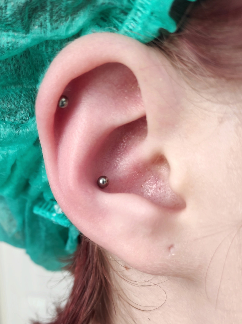 Пірсинг Конч (з титановою прикрасою для первісного проколу)