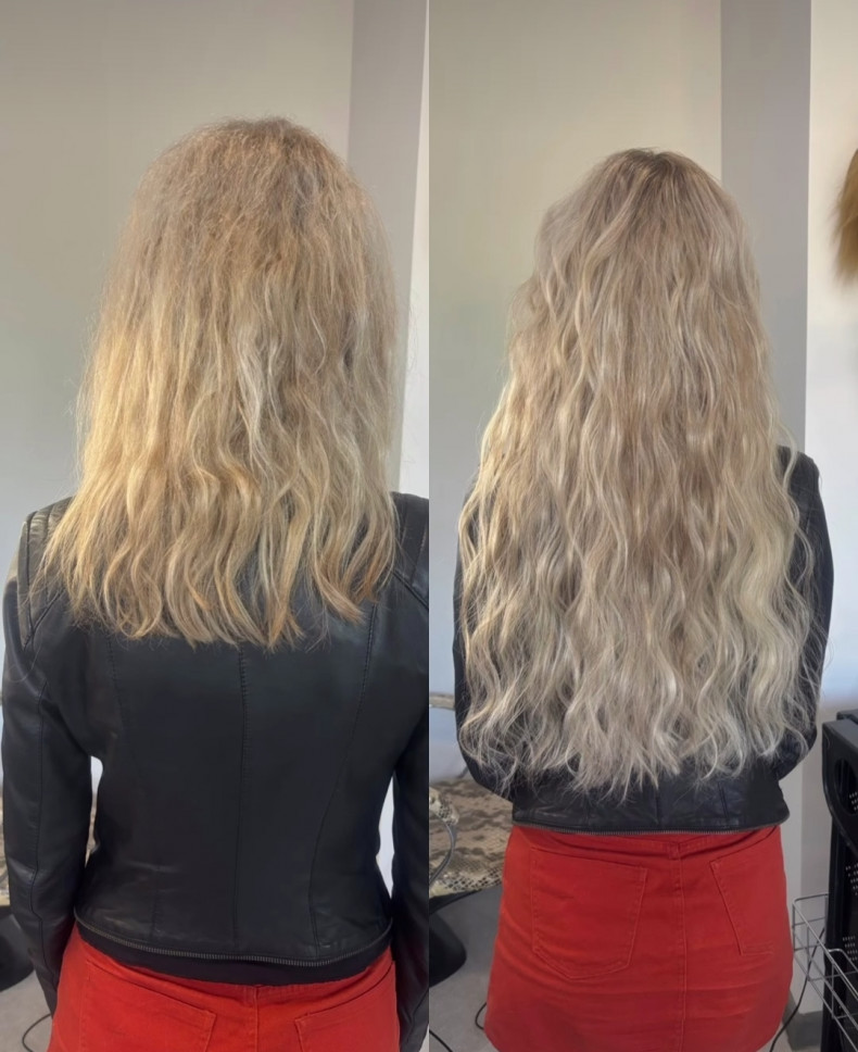 Дівчатка нарощую біопротеїнове волосся, дуже схоже на натуральне)